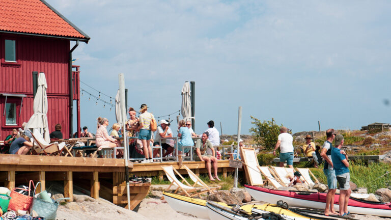 Många vill ut redan fredag och vi ordnar en tur till Härmanö men lyxar till det med lunch på gulliga caféet Grindebacken.